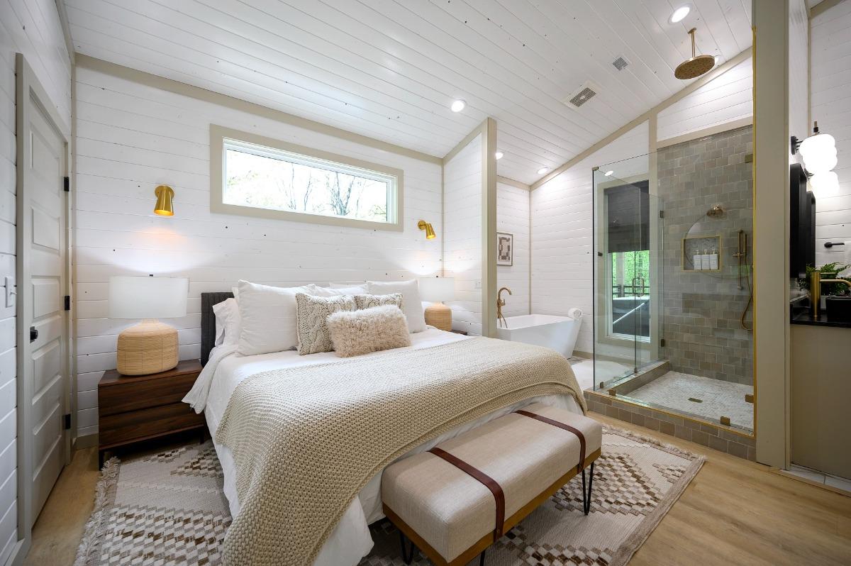 Cabins feature plush bedding, upscale furnishings, tasteful décor, and warm lighting that set the tone for romance and relaxation.